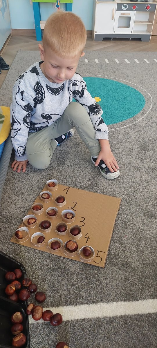 Podczas zajęć matematycznych liczyliśmy kasztany, rozwijając umiejętności liczenia i logicznego myślenia.