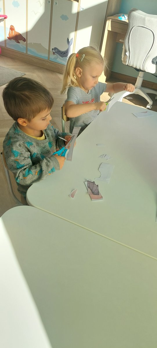 Ćwiczyliśmy sprawność rączek podczas wycinania i przygotowywania elementów do naszych prac.