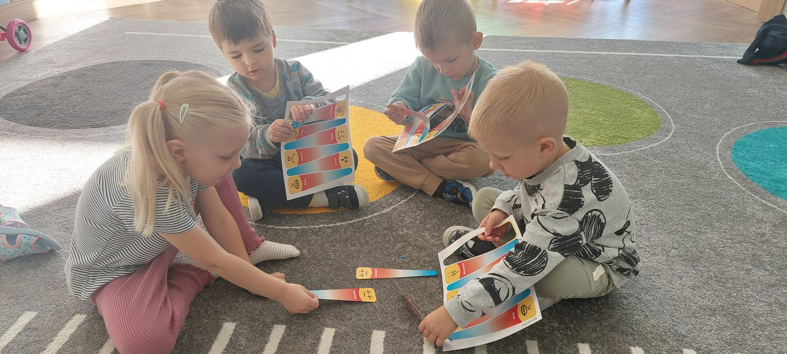 Wspólnie stworzyliśmy ścieżkę sensoryczną, która dostarczyła dzieciom wielu wrażeń dotykowych.